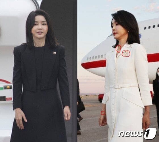김건희 Tpo 6월 스페인 白라인 장신구 9월 런던 올 블랙 노 장신구